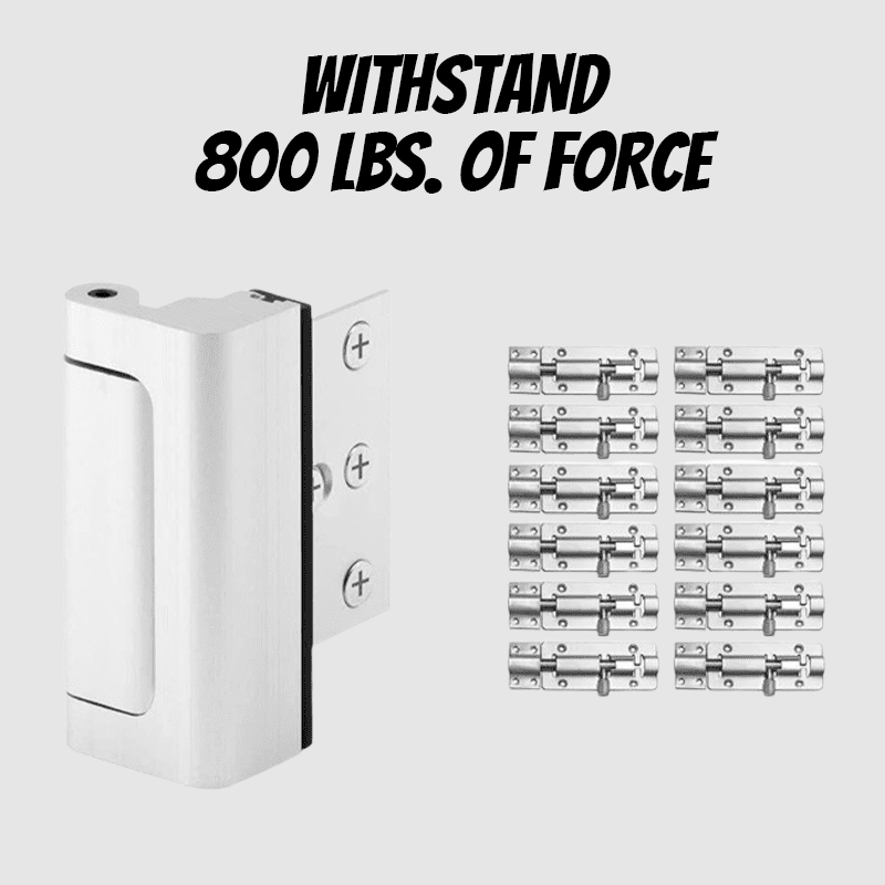 Introducing our top-of-the-line Door Reinforcement Lock. designed to provide unparalleled security and peace of mind for your home or office. Engineered with cutting-edge technology. this lock boasts an impressive 800lbs of force resistance. making it a formidable barrier against unauthorized entry.