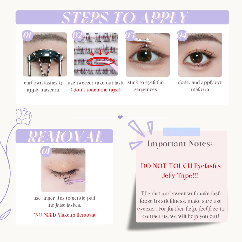 Step2️⃣Stick false lash under your own eyelash. 3-4 pieces per eye.