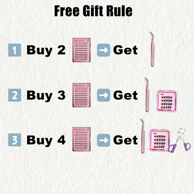 Buy 4 Lashes get 1 Pink Tweezer + 1 Travel Pack + 1 Curler